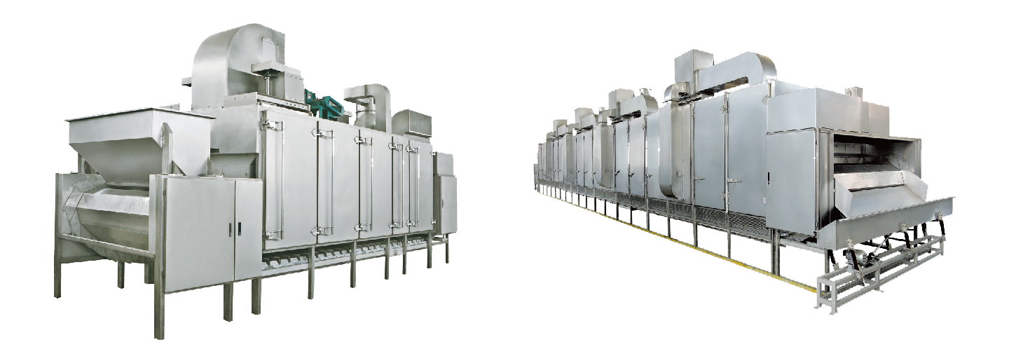 采用智能化控制系統(tǒng)循環(huán)熱風(fēng)方式進(jìn)行穿透式烘烤;物料厚度、行進(jìn)速度自動(dòng)可調(diào),各單元溫度獨(dú)立調(diào)整;后置獨(dú)立冷卻區(qū),無(wú)需單獨(dú)冷卻;模塊式結(jié)構(gòu),產(chǎn)量提高亦無(wú)須變更設(shè)備;熱源多元化,可使用天然氣、液化氣、導(dǎo)熱油、電等。