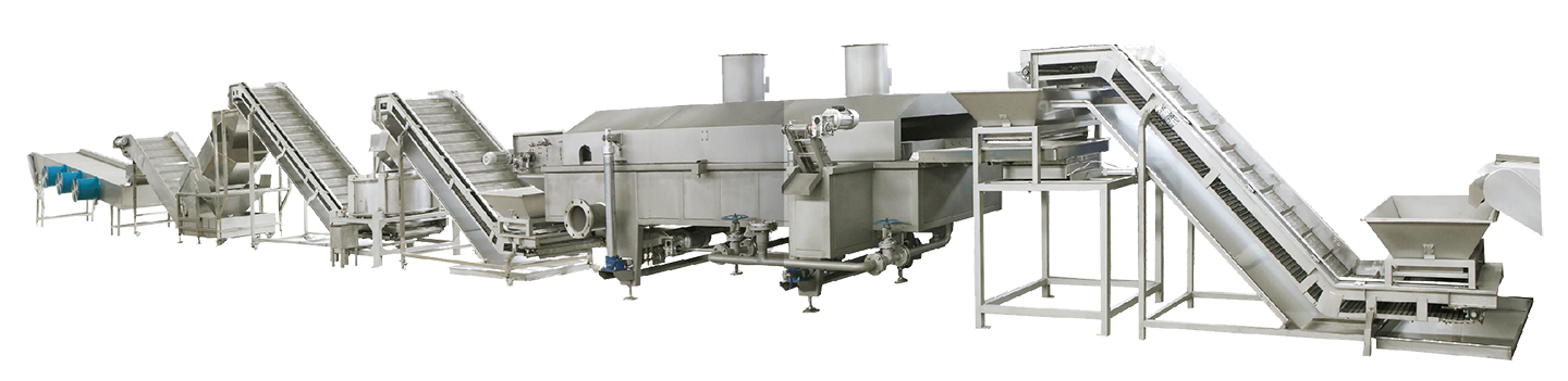 該生產(chǎn)線適用于豆類、堅果類、裹粉顆粒食品、薯片、薯條、膨化食品等的加工生產(chǎn)。